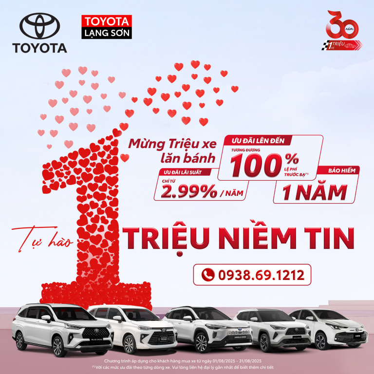 Trên hành trình hướng tới cột mốc 1 triệu xe bán ra trong tháng 7 này, Toyota Việt Nam & Toyota Lạng Sơn mang đến