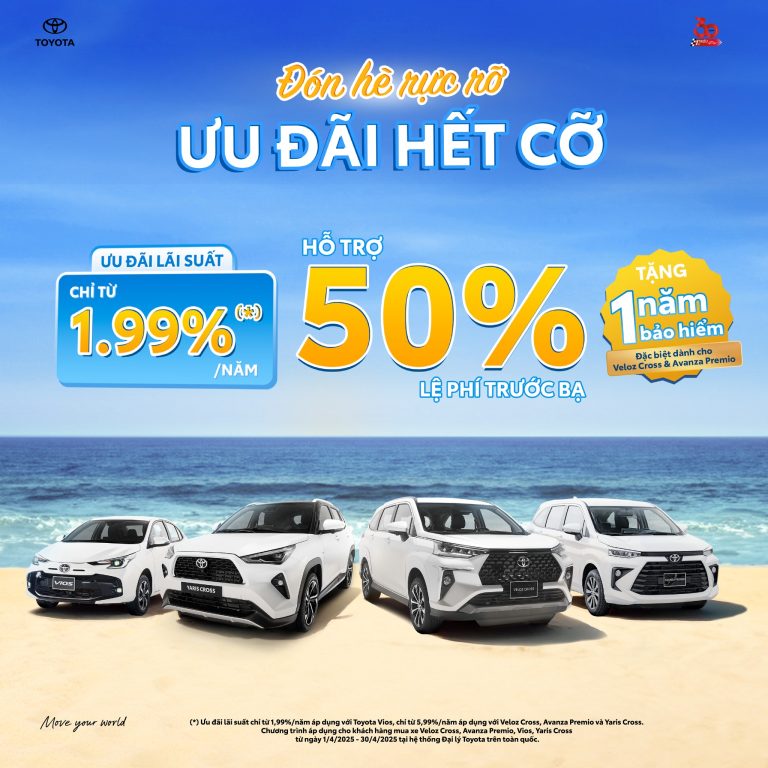 Sở hữu ngay mẫu xe Vios, Yaris Cross, Veloz Cross và Avanza Premio, khách hàng được nhận ưu đãi siêu hời: 🎁 HỖ TRỢ 50%