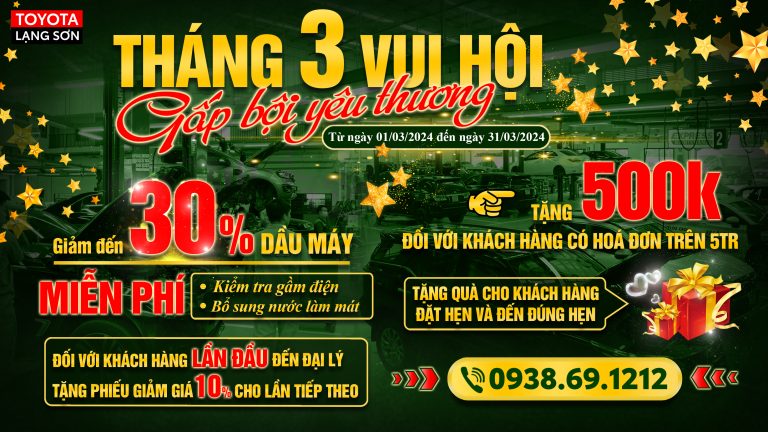 Đón chào Tháng 3 yêu thương, ngọt với hàng loạt ưu đãi hấp dẫn khi Khách hàng tới làm dịch vụ tại Toyota Lạng Sơn:
